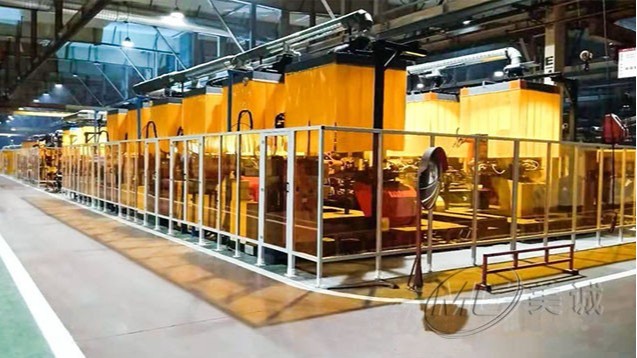 機(jī)器人防弧光板圍欄是在設(shè)備外圍建立安全范圍防護(hù)措施,以劃分安全范圍,阻隔人或物與設(shè)備直接接觸,起到安全警示作用,常和報警及斷電設(shè)備配套使用??蚣懿糠质褂娩X型材,配合絲網(wǎng)、亞克力、PC等各類板材,通過鋁型材配件安裝膨脹螺栓連接鋁型材立柱和地面。