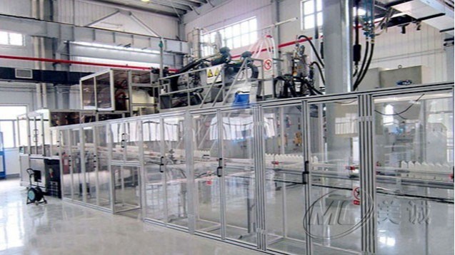 工廠車間隔斷是在設(shè)備外圍建立安全范圍防護(hù)措施,以劃分安全范圍,阻隔人或物與設(shè)備直接接觸,起到安全警示作用,常和報(bào)警及斷電設(shè)備配套使用??蚣懿糠质褂娩X型材,配合絲網(wǎng)、亞克力、PC等各類板材,通過鋁型材配件安裝膨脹螺栓連接鋁型材立柱和地面。